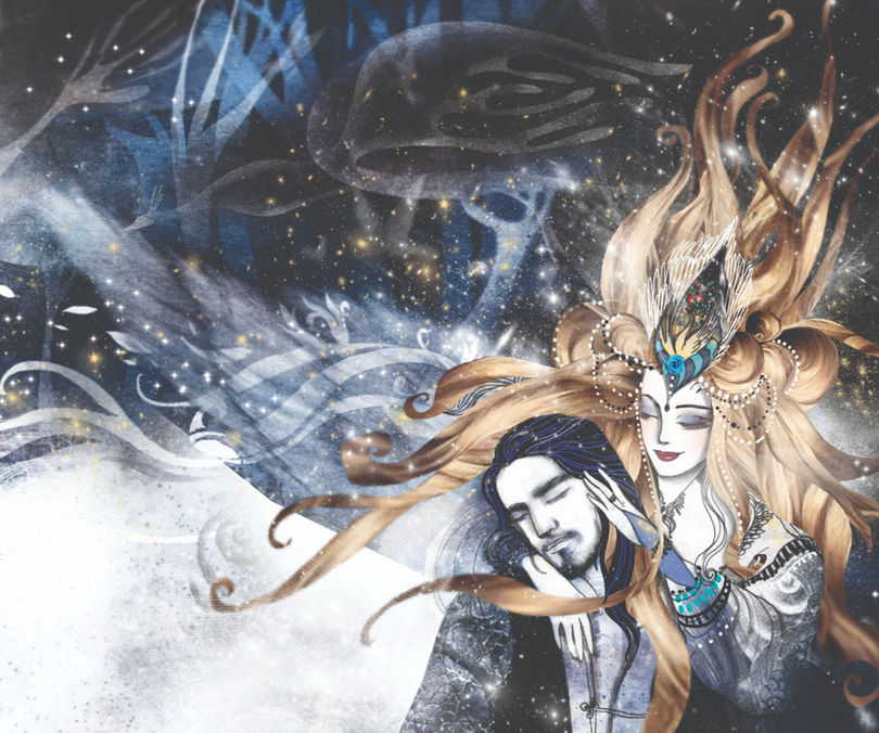 A spark of citrine light caught in the folds of night — a playful sun weaving secret threads